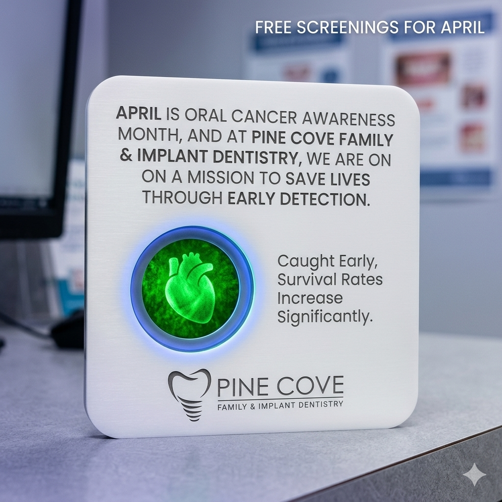 April is Oral Cancer Awareness Month, and at Pine Cove Family & Implant Dentistry, we are on a mission to save lives through early detection. Oral cancer is often called a "silent" disease because its early stages can be painless and easy to miss. However, when caught early, the survival rate increases significantly.